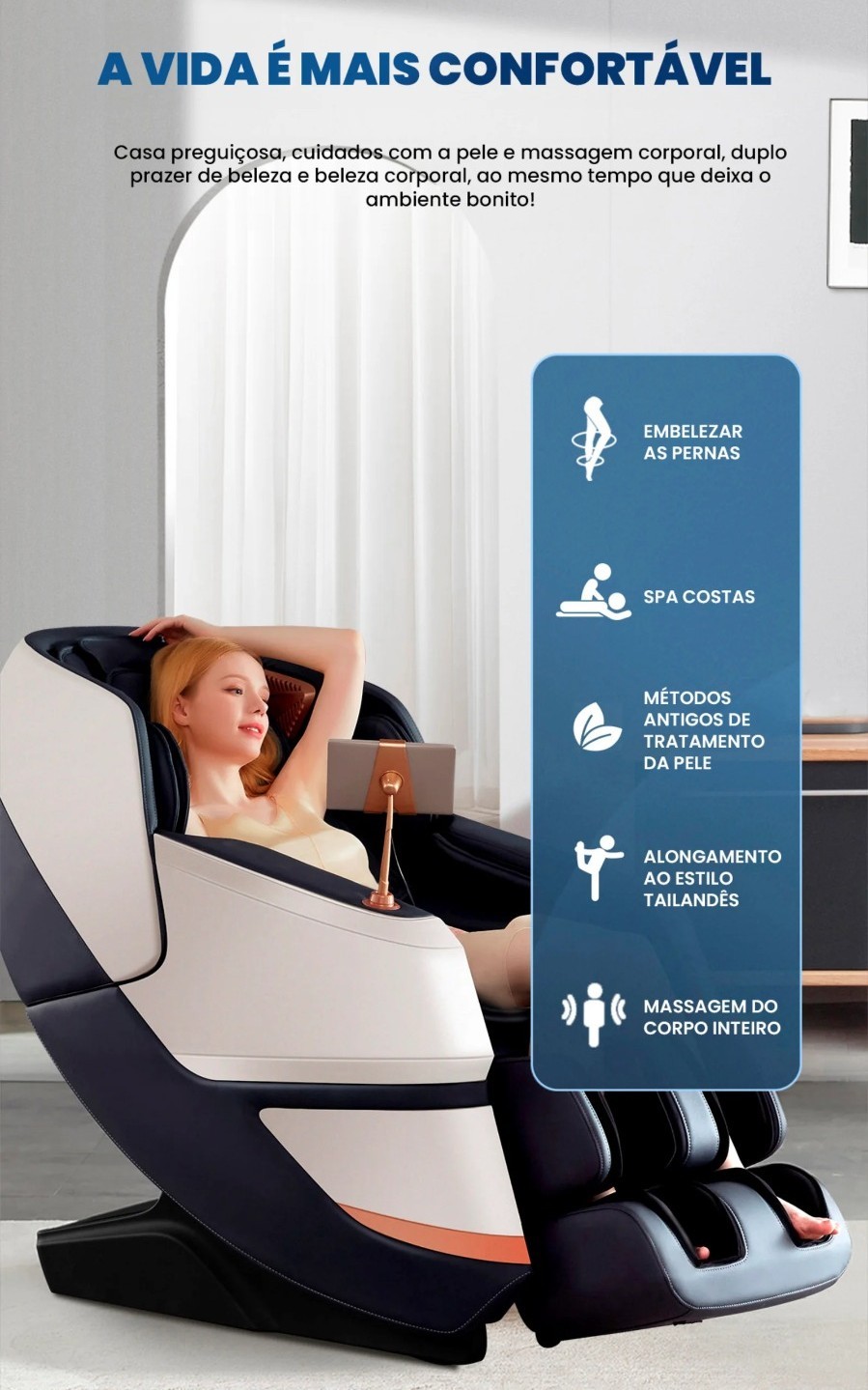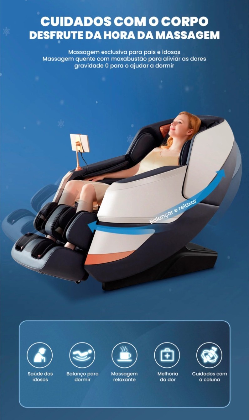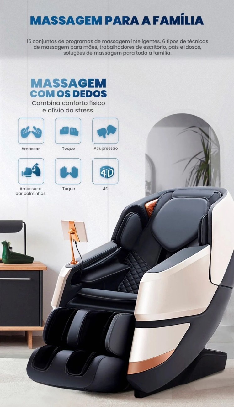 Descubra o verdadeiro significado de relaxamento e alívio muscular com a iRest Quantum PD-100 4D com IA – uma poltrona de massagem inteligente que combina tecnologia avançada, conforto superior e design sofisticado para transformar cada sessão em uma experiência revigorante e personalizada.