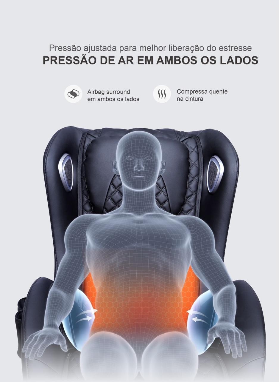 Equipado com mecanismo inteligente que realiza movimentos verticais e laterais, simulando técnicas profissionais. Ideal para aliviar tensões acumuladas e promover relaxamento muscular eficaz.