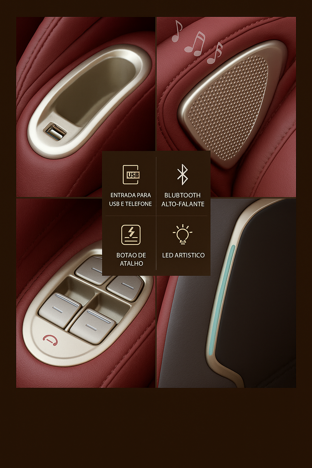 Transforme cada sessão de massagem em um momento de total relaxamento, conectando seu smartphone via Bluetooth para ouvir suas músicas favoritas ou sons relaxantes enquanto aproveita cada movimento.