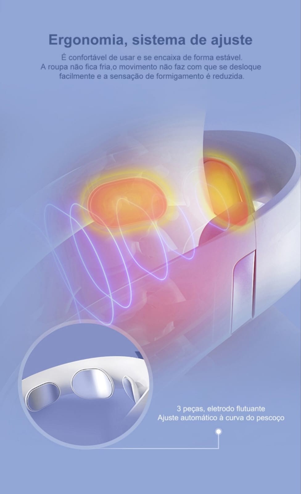 Se adapta perfeitamente ao contorno do pescoço para uma experiência de massagem natural e eficaz.